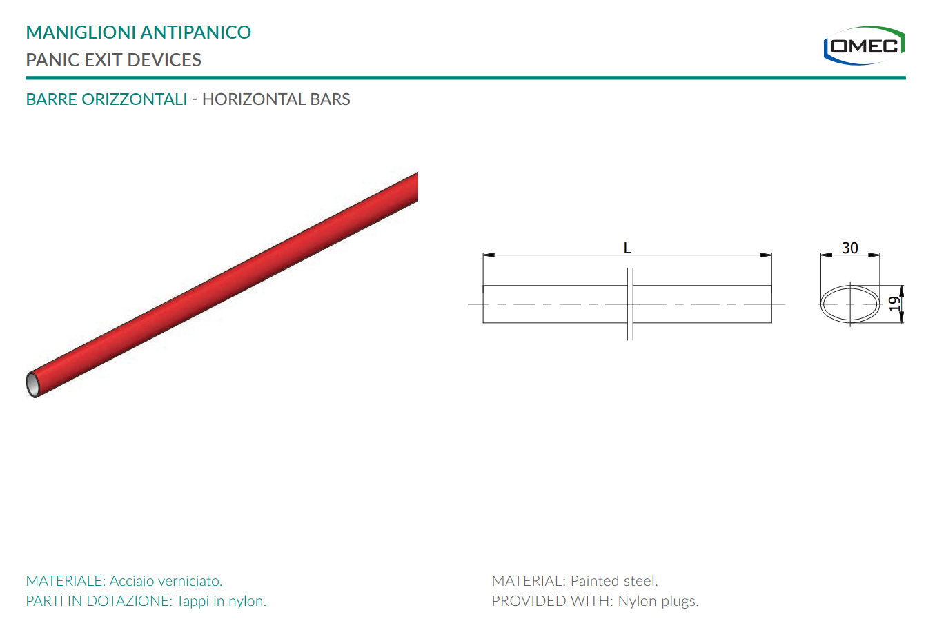 Barra ovale orizzontale mm 1480 per maniglioni antipanico Omec 6006 AR