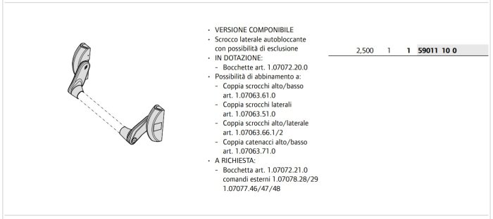 - Scrocchi laterale e alto/basso autobloccanti.