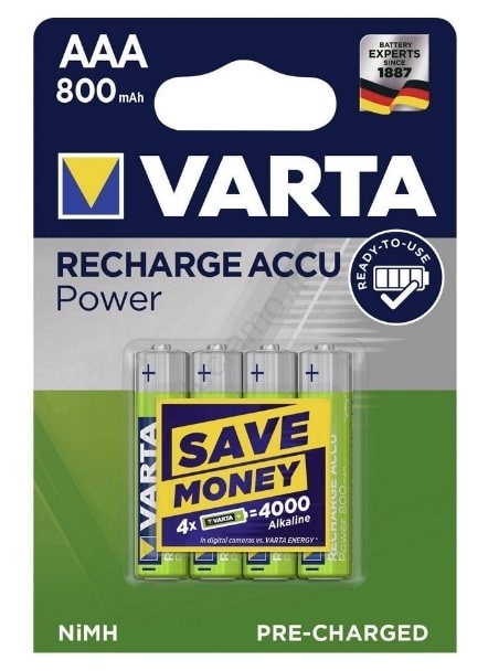 - Batterie ricaricabili 1,2V VARTA AAA 800mAh (4 pezzi)