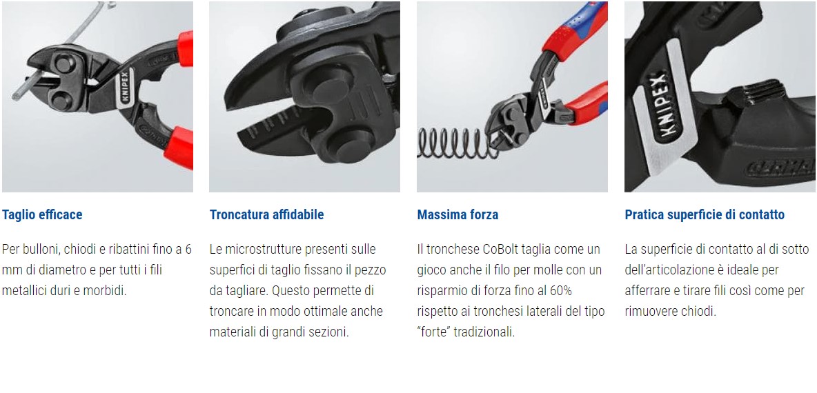 Mister muscolo in formato tascabile. Il tronchese per bulloni Knipex CoBolt 71 02 200 potenzia di 35 volte la forza della vostra mano.