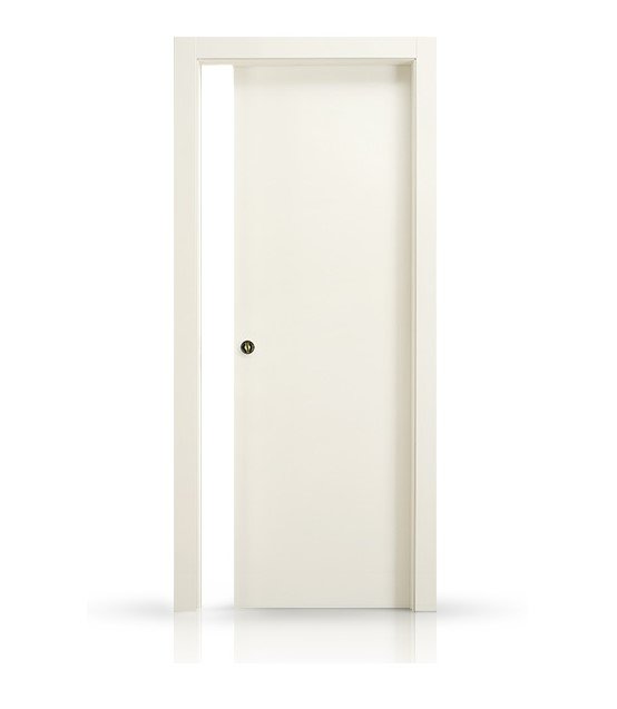 - Telaio e coprifili piatti e squadrati in MDF a tre strati sovrapposti , per la porta base.