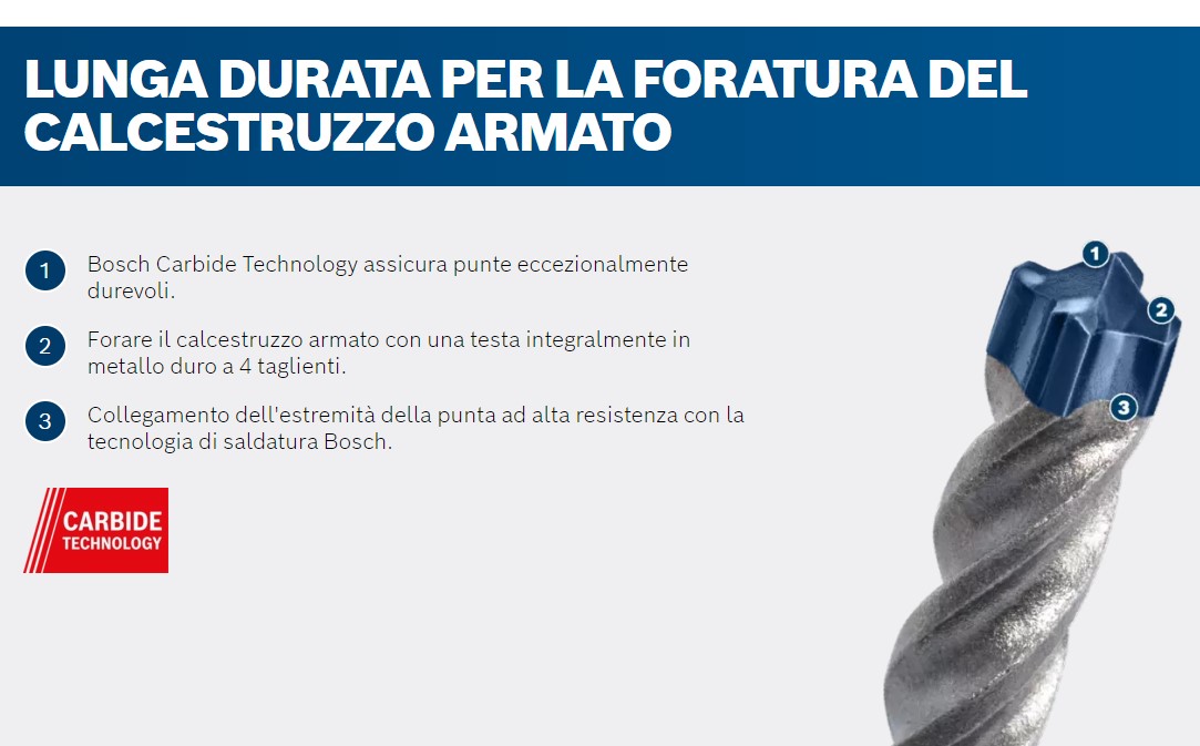 - Bosch Carbide Technology assicura punte eccezionalmente durevoli.