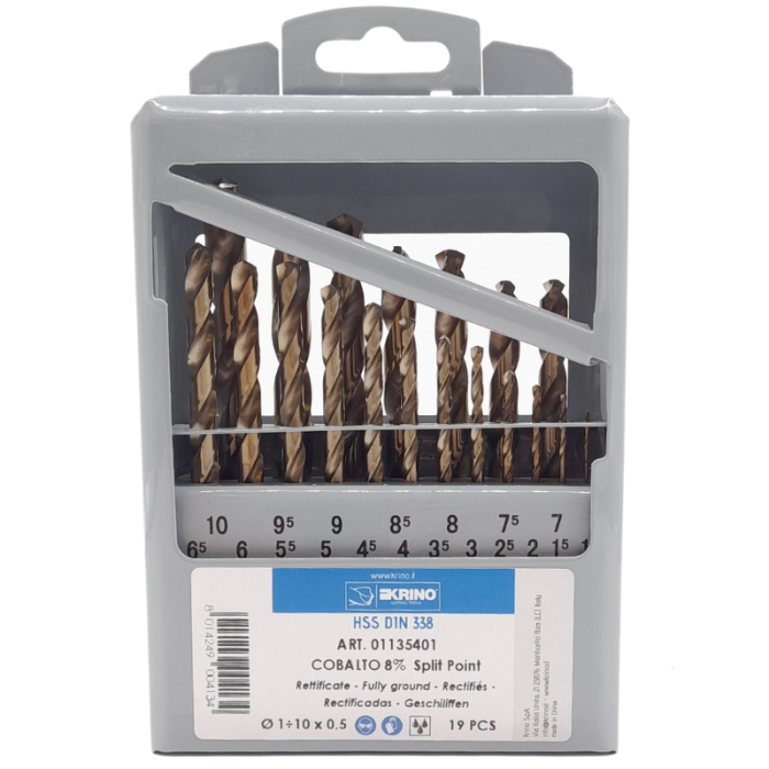 Serie 19 punte trapano al cobalto 8% (1-10 mm) Krino 01135401
