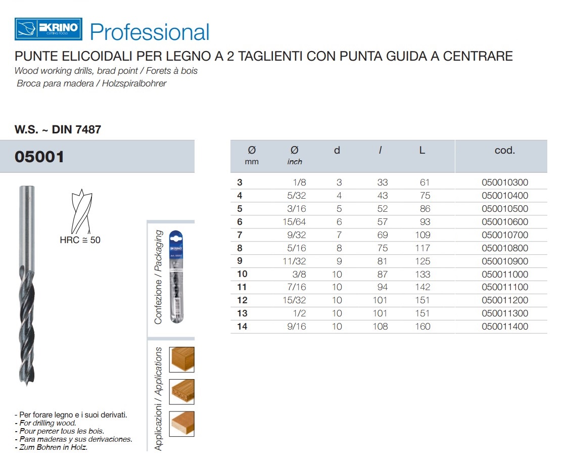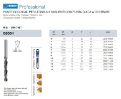 Punte elicoidali per foratura legno a 2 taglienti KRINO 05001