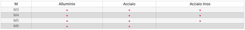 - Alluminio: da M3 a M6