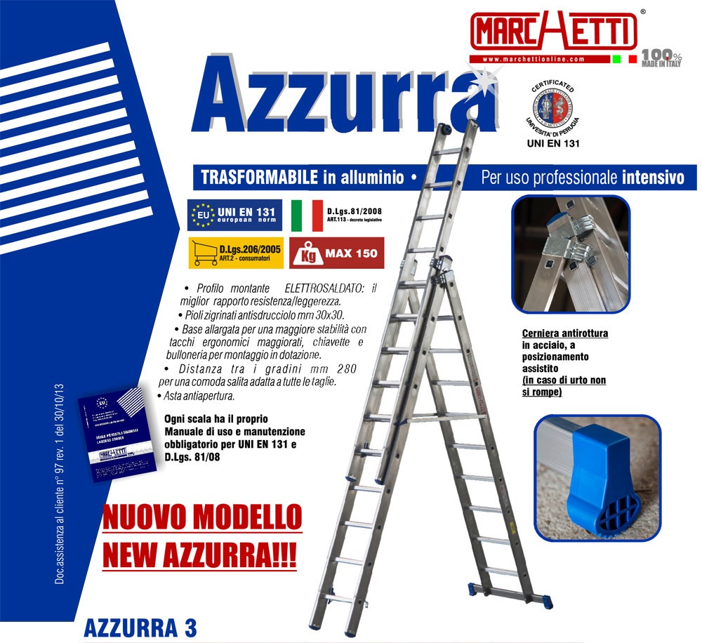 Scala in alluminio Marchetti Azzurra A3 mt 3,60 con 12 pioli (3 tronconi)