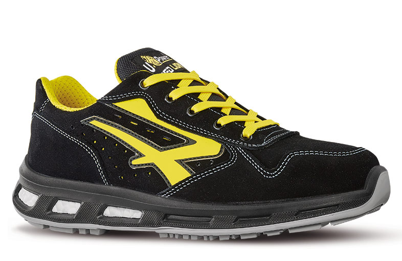 Scarpe antinfortunistiche basse, leggere e comode u power della linea Red Lion, con tomaia in morbida pelle scamosciata forata ultra traspiranti e puntale in alluminio, antiperforazione, antiscivolo e suola PU/PU infinergy S1P SRC ESD