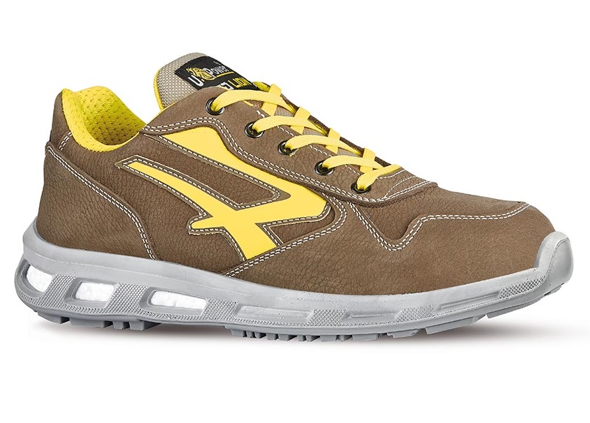 Scarpe antinfortunistiche basse, leggere e comode u power della linea Red Lion, con tomaia in pelle nabuk naturale bottalato, traspiranti, idrorepellente, puntale in alluminio, antiperforazione, antiscivolo e suola PU/PU, infinergy S3 CI SRC ESD