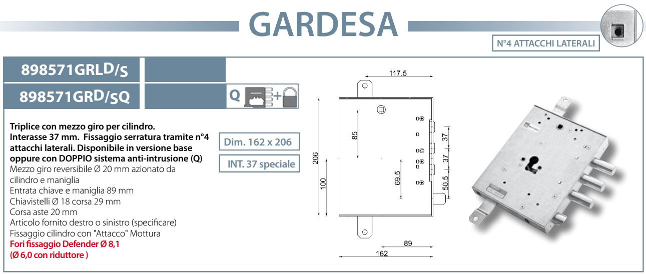 - Serratura MOTTURA 89.8571GRLD/S per porta blindata GARDESA