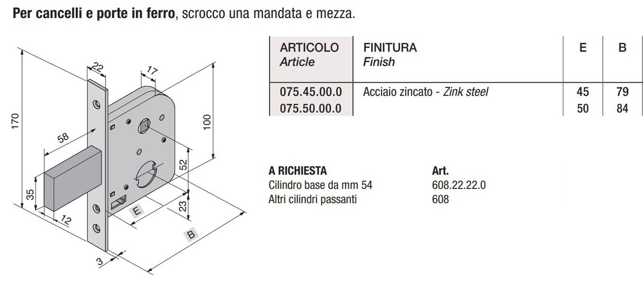 - Serratura per cancelletti Welka 075 una mandata e mezza - E mm 45