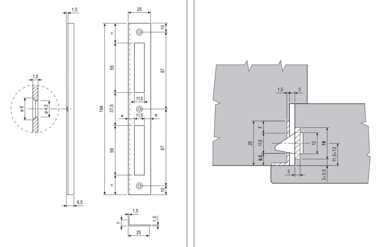 - Incontro in acciaio con bordo quadro, larghezza 25 mm - lunghezza 194 mm