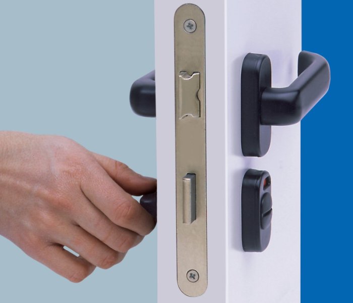 - Accessorio che permette di sostituire il blocchetto chiave di porte ad uso pubblico con comando di apertura e chiusura dall'interno.