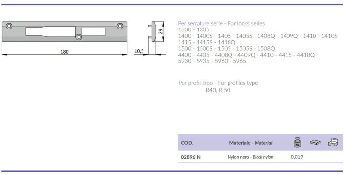 - Contropiastra in nylon nero Omec 02896N per profili R40-R50