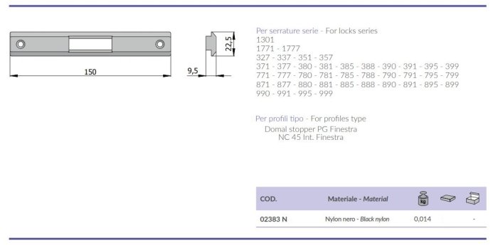 Contropiastra in nylon Omec 02383N Domal stopper PG Finestra NC45