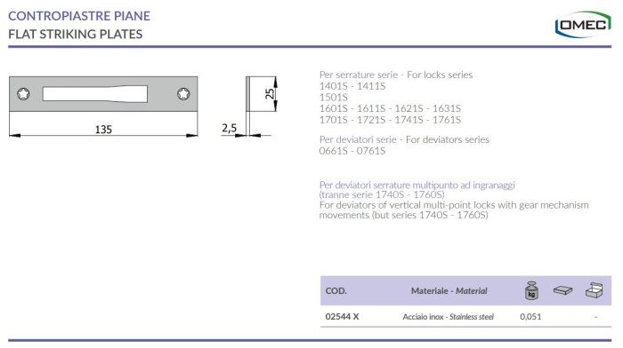 - Contropiastra piana in acciaio inox Omec 02544/X