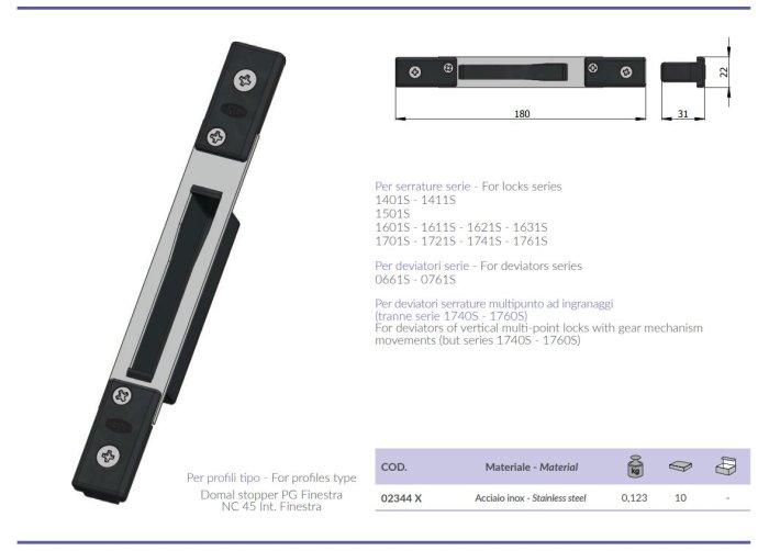 - Per profili tipo - Domal stopper PG Finestra NC 45 Int. Finestra