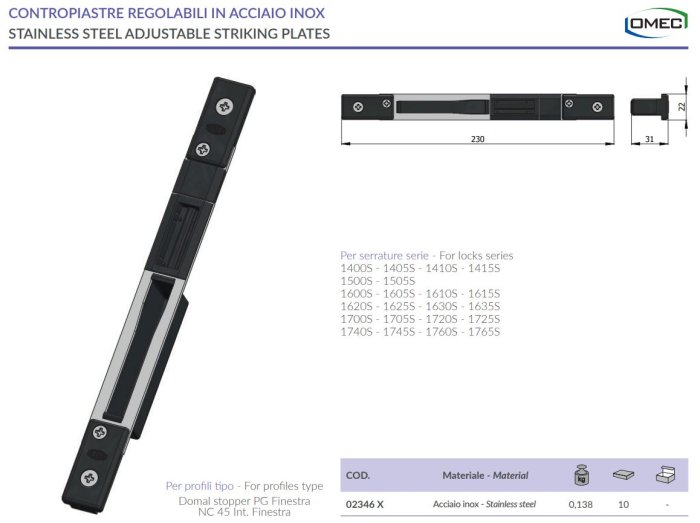 - Contropiastra regolabile in acciaio inox Omec 02346/X