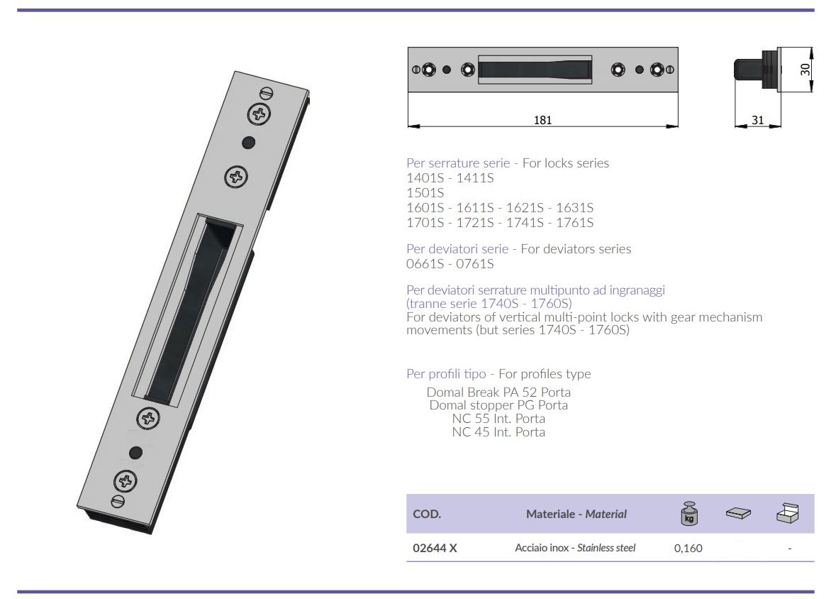 - Contropiastra regolabile in acciaio inox Omec 02644/X
