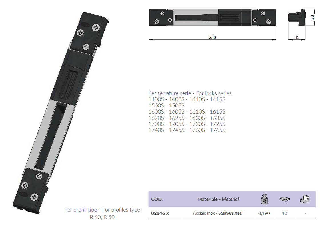 Per profili tipo R 40, R 50