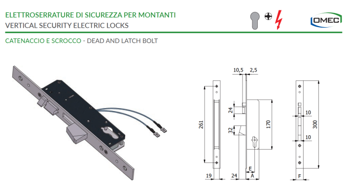 - Elettroserrature di sicurezza catenaccio e scrocco Omec 1408 - E mm 25