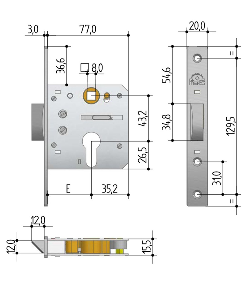 Serratura a infilare profili metallici e porte legno PREFER 5510.0800.1000