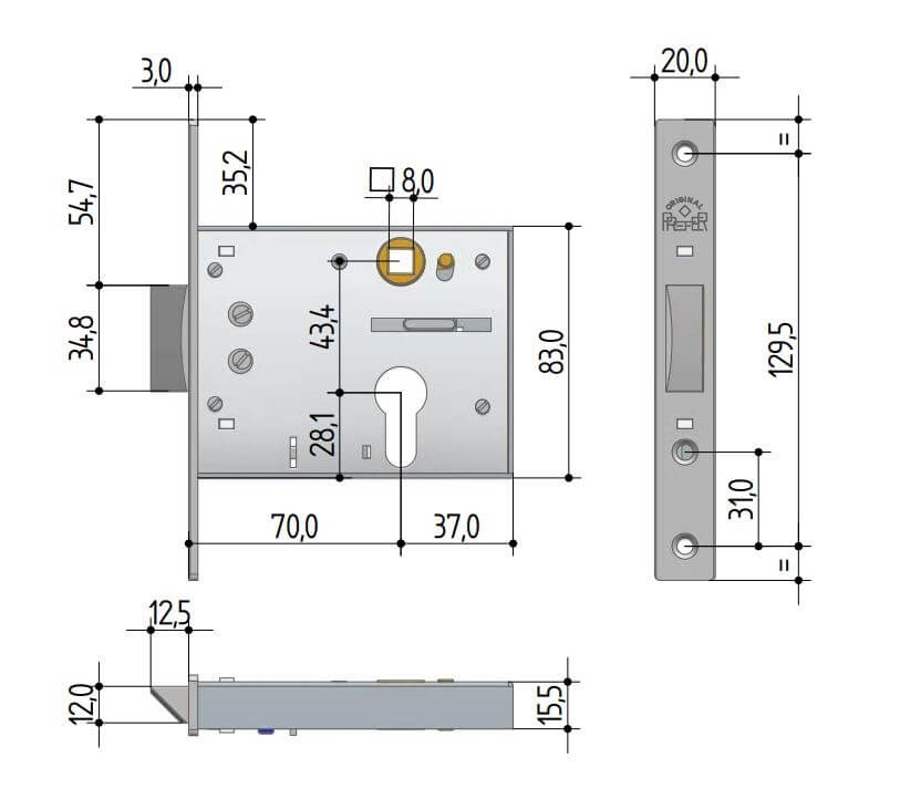 - Serratura a infilare scrocco 1 mandata Prefer 5511.1800.1000 E70 MM