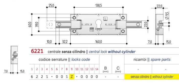 - Serratura centrale per serrande e avvolgibili PREFER 6221.001Z.0000