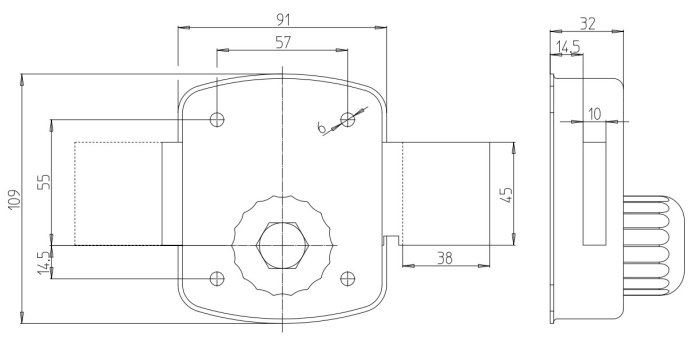 SERRATURA LATERALE SERIE 1500 con cilindro a pompa sul lato esterno, POMOLO sul lato interno.