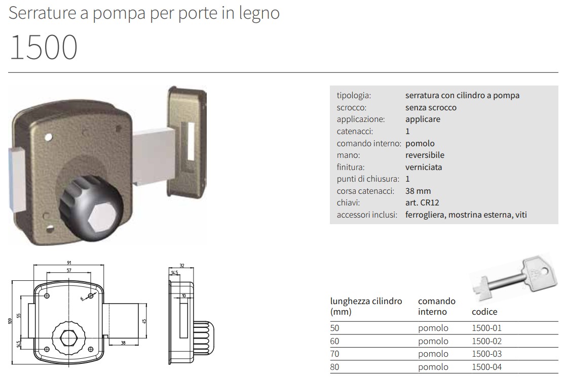 - Serratura CR 1500-01 verniciata cilindro pompa mm 50