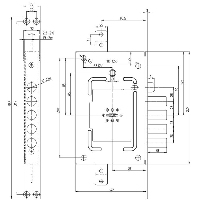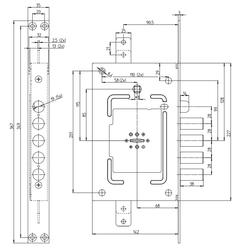 Serratura a infilare CR 2650/28 doppia mappa reversibile