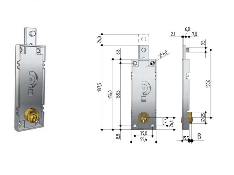 Serratura per basculanti solo chiave (senza quadro maniglia) Prefer B511.0010.0200
