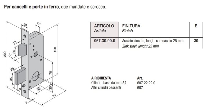 - Serratura per cancelli Welka 067 entrata mm 30 F22