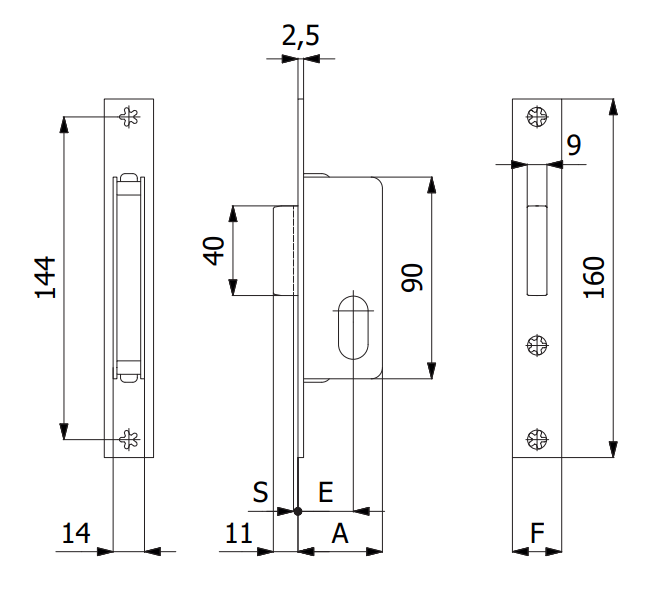 Serratura per montanti solo catenaccio Omec 335 frontale inox 22 mm