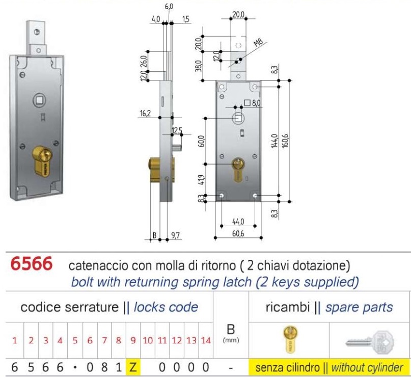 - Serratura per porte basculanti profilo europeo Prefer 6566.081Z.0000