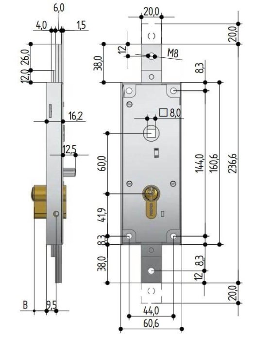 - Serratura per porte basculanti profilo europeo Prefer 6569.081Z.0000