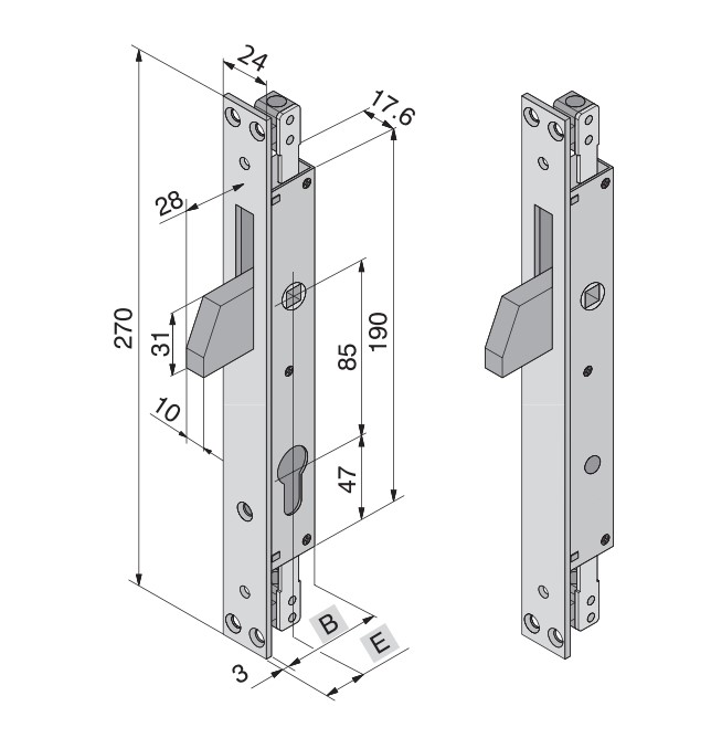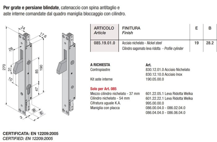 Serratura Welka 085.19 per persiane blindate aste interne E19 mm