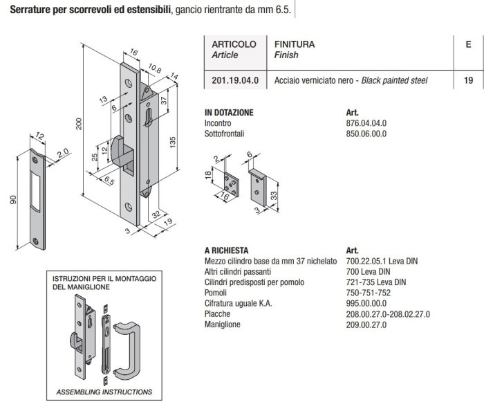 - Serratura per serramenti in alluminio, scorrevoli ed estensibili