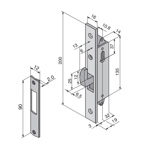 Serratura Welka 201.19 a gancio entrata 19 mm F16
