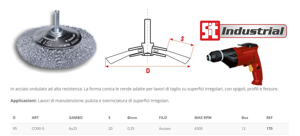- Spazzola circolare conica acciaio ondulato ø 95 mm con gambo
