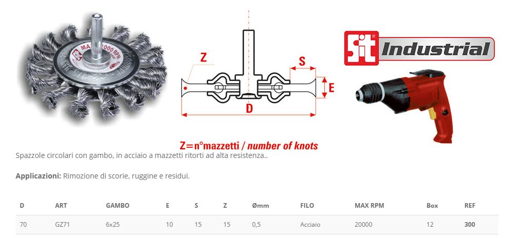 - Spazzola circolare ø 70 mm in acciaio con gambo per trapano
