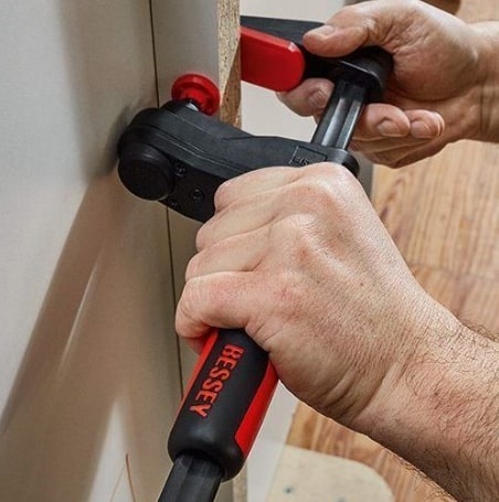 - Impugnatura in plastica bicomponente di alta qualità posizionata attorno alla guida per utilizzare lo strettoio in spazi angusti