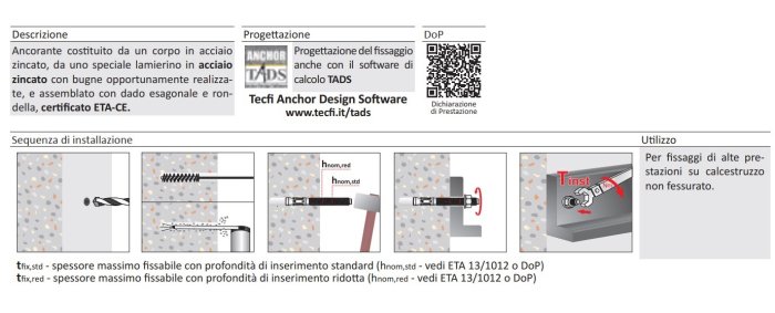 - Progettazione del fissaggio anche con il software di calcolo: TADS - Tecfi Anchor Design Software