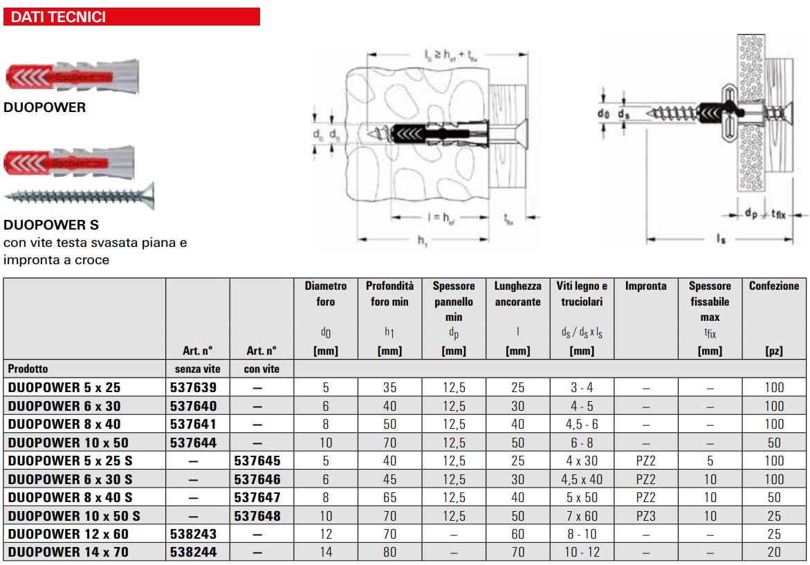 - Tassello in nylon fissaggio universale Fischer DUOPOWER S - | mm 6x30