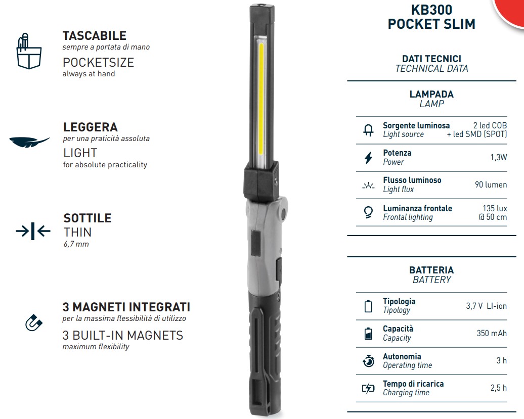 - Flusso luminoso 90 lumen