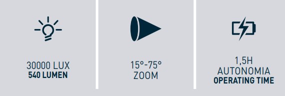 - Luminanza frontale 30000 lux @ 50 cm