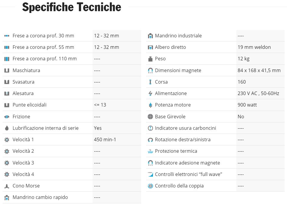 - Capacità punte elicoidali Ø max 13mm