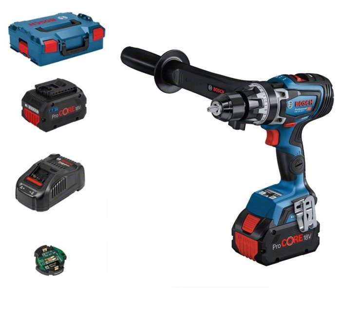 Il trapano-avvitatore è compatibile con tutte le batterie e tutti i caricabatterie Bosch Professional da 18 V (Professional 18V System). Per ottenere il massimo della potenza, si consiglia una batteria ProCORE18V ≥ 5,5 Ah.