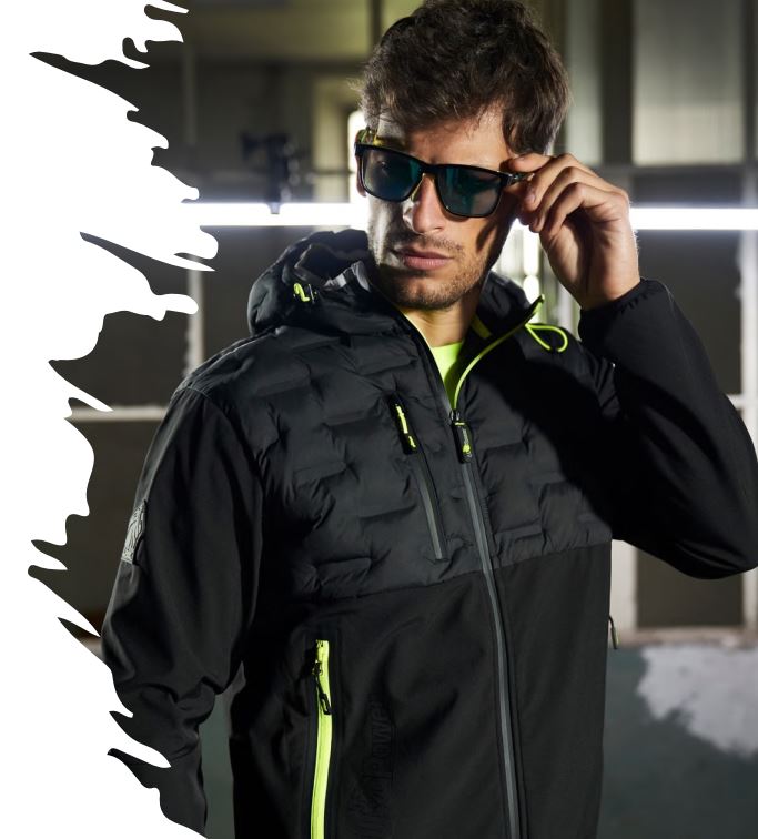 - Giacca ibrida idrorepellente traspirante e anti vento estremamente versatile e ideale per chi svolge lavori dinamici in ambienti freddi o medio temperati senza però rinunciare alla libertà di movimento.