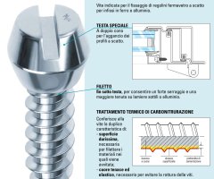 - Vite indicata per il fissaggio di regolini fermavetro a scatto per infissi in ferro e alluminio.
