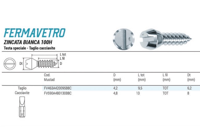 - Viti fermavetro Mustad testa doppio cono zincate - ø x L mm 4,2x9,5